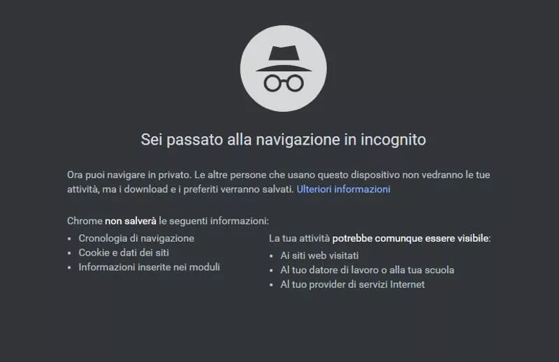 Che cos’è la navigazione in incognito