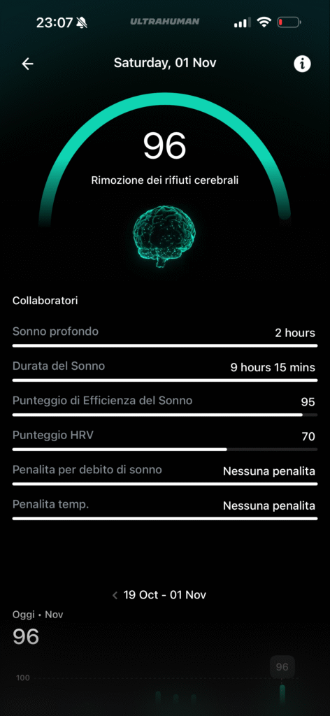 Ci sono poi dati avanzati anche sull’età del corpo con consigli su come migliorare, informazioni sul jet lag social per gestire eventuali recuperi dopo che abbiamo fatto tardi e dettagli sulla rimozione dei rifiuti cerebrali, un meccanismo che elimina tossine, rifiuti metabolici e proteine in eccesso dal cervello durante il sonno.