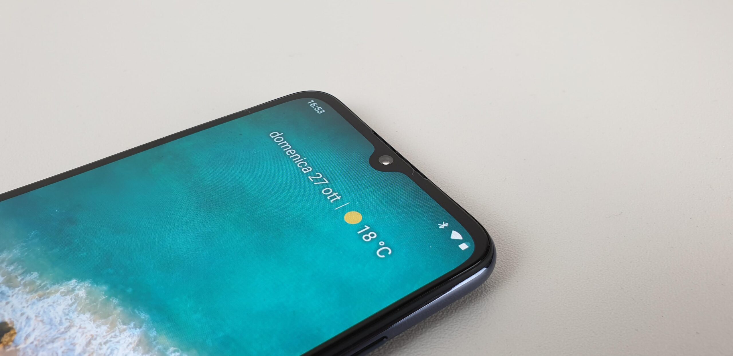 Lo schermo è protetto dal resistente Gorilla Glass 5 e supporta l’ambient display. Luminosità e leggibilità sono più che buone grazie agli ottimi contrasti. La luminosità minima è leggermente troppo alta, problema facilmente risolvibile con un aggiornamento via software. Manca il supporto al doppio tap per il risveglio dello schermo ma si riesce a riattivare agevolmente posando il dito sul sensore delle impronte. Il notch a goccia ha dimensioni ridotte ed influisce poco sull’utilizzabilità dello schermo.
